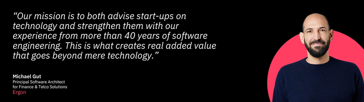 Ergon also has a wide range of expertise to offer: strategy and ideation, UX design, software engineering,security, cloud, data and AI. This end-to-end approach reduces handover losses and shortens time to market. Together with the Tenity ecosystem – which connects founders, corporate clients, investors and mentors – ideas become viable, regulation-compliant products more quickly.